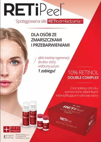 RETI PEEL zabieg z retinolem który silnie odmładza . To jedyny na rynku zabieg z zastosowaniem 10% retinolu który pozwala uzyskać efekt mocnego odmłodzenia i naprawy skóry bez złuszczania i podrażnień.
